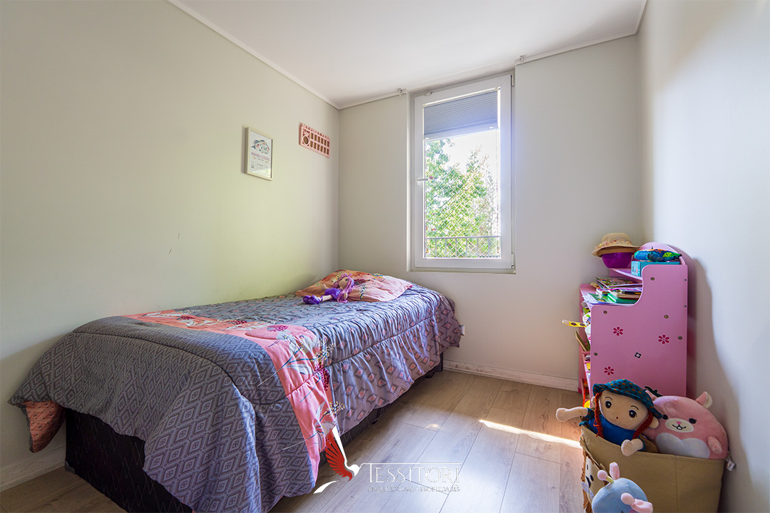 Dispone de tres dormitorios y dos baños, con espacios bien aprovechados y en muy buen estado de conservación, considerando su antigüedad de aproximadamente 6 años.