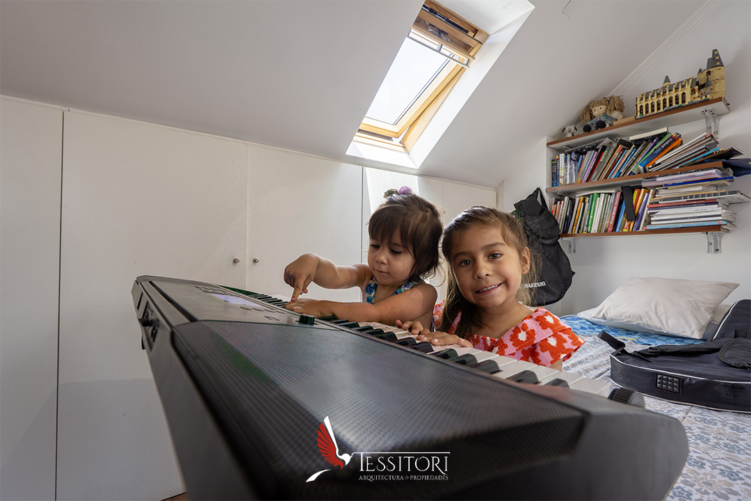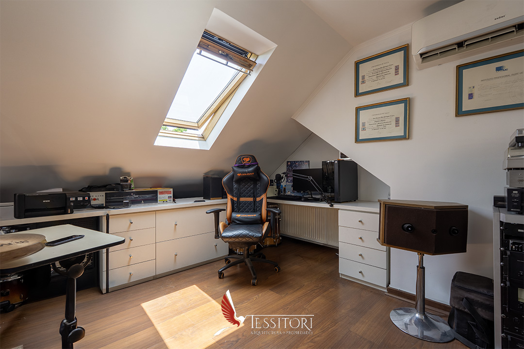 El tercer nivel ofrece una mansarda de gran versatilidad, que puede adaptarse como home office, sala de juegos, estar familiar o dormitorio adicional, respondiendo a las distintas etapas y necesidades de la familia.