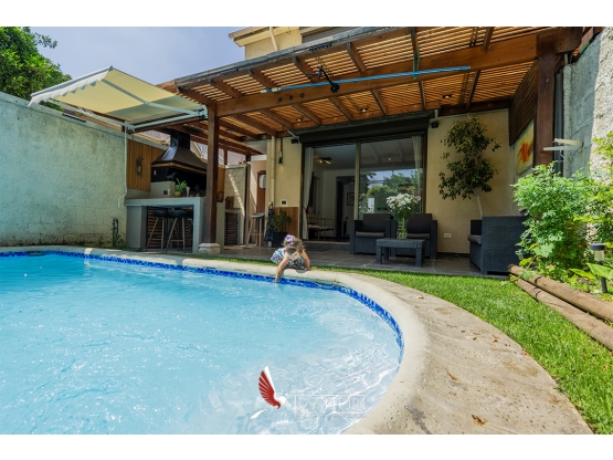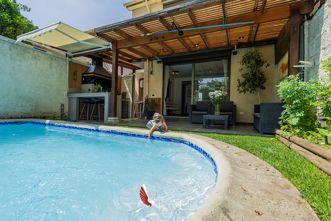 El exterior de la casa es uno de sus grandes atributos: patio de buen tamaño, piscina privada y quincho, configurando un espacio ideal para disfrutar al aire libre durante todo el año.